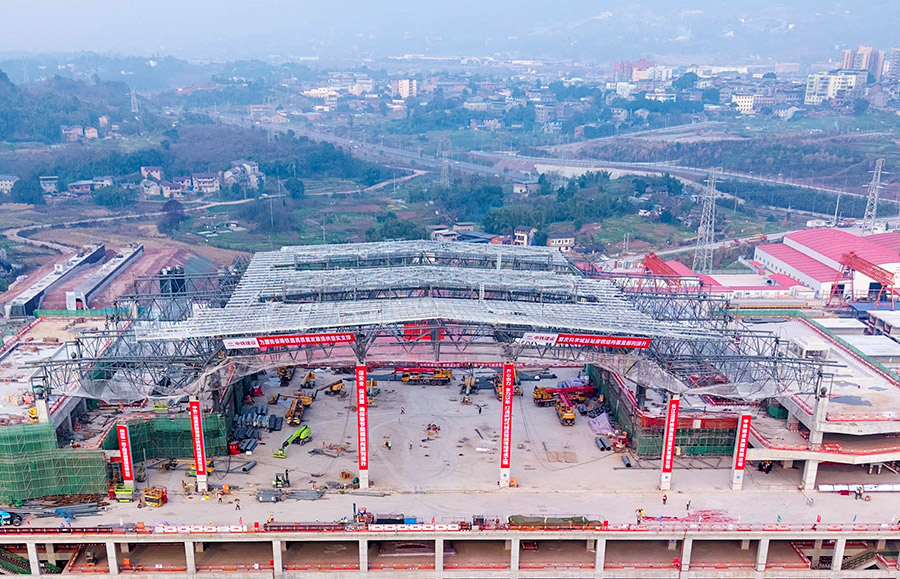 成渝中线重庆科学城站站房钢结构屋盖施工完成