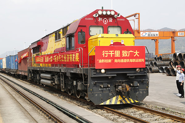 去年11月,南向通道正式升级国际陆海贸易新通道,其战略地位空前提高。作为陆海新通道的核心运输方式,铁海联运班列有效衔接了“一带”与“一路”, 实现了与中欧班列(重庆)等的融合发展。目前,经由重庆国际物流园,亚欧两大洲之间高附加值产品、快消品等货品流通的贸易新通道打通了,低成本的转口贸易开始从沿海转向重庆。