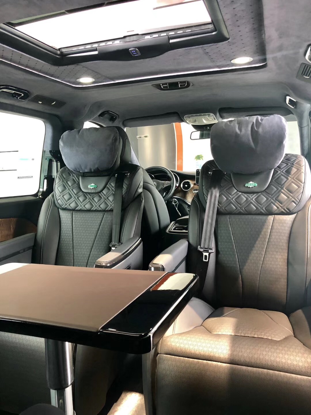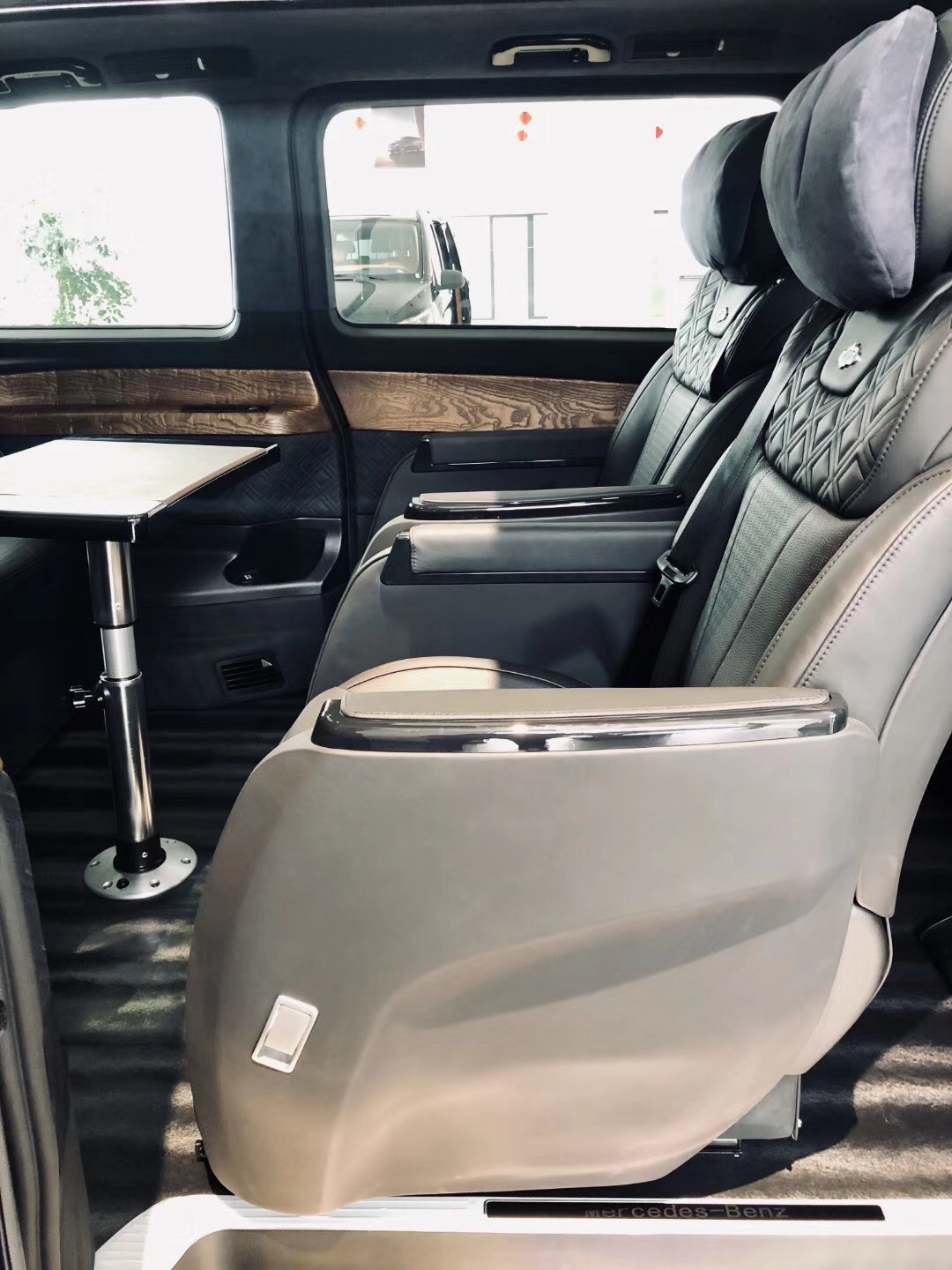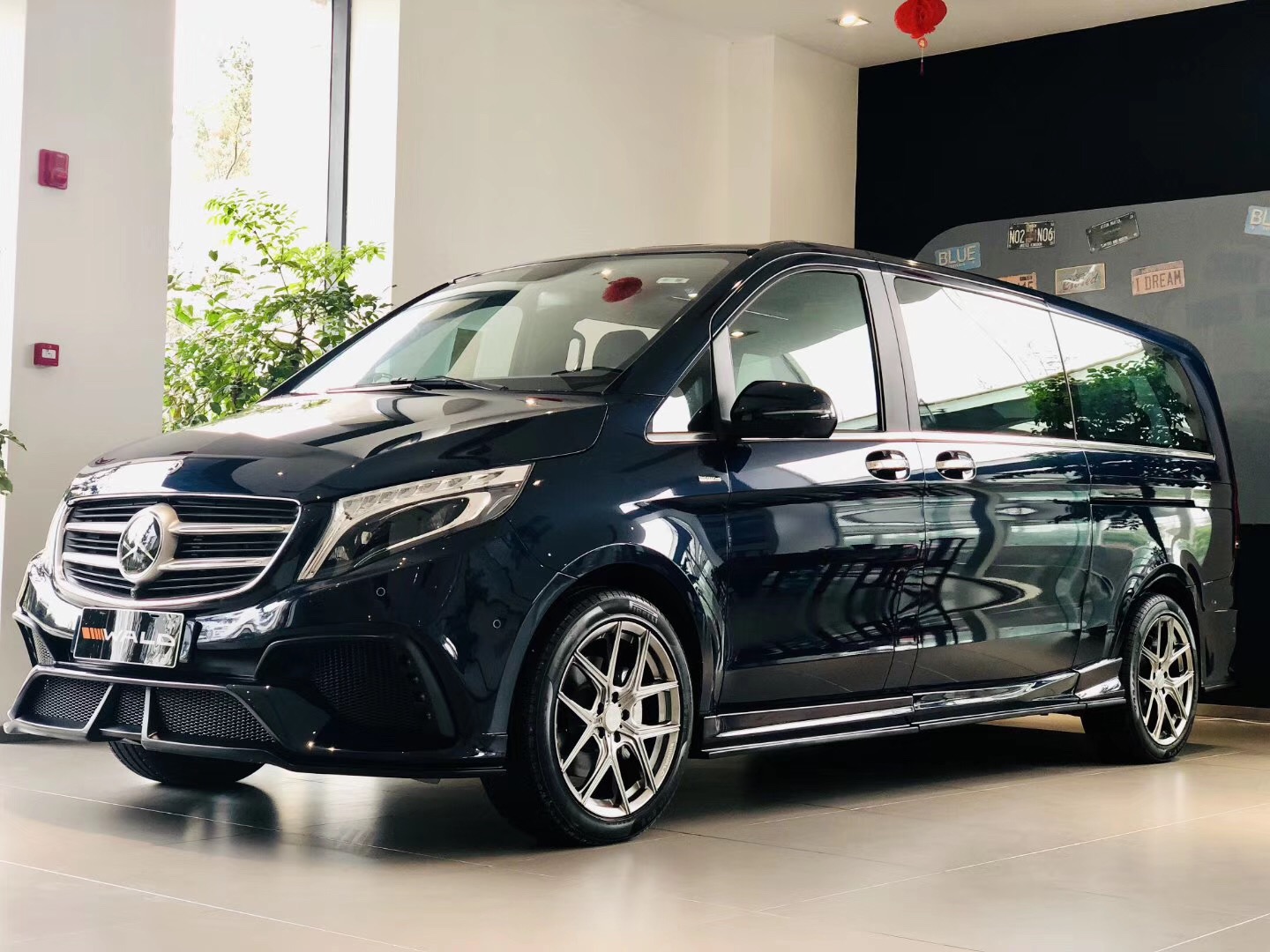 悬架类型:前麦弗逊式/后版拖拽臂式独立悬架 外部配置 豪华镜面奔驰中网标,豪华镀铬行李架,全车尊贵镀铬门外拉手,全车尊贵镀铬迎宾踏板(8件套),后尾门尊贵镀铬装饰件(3件套),后杠尊贵镀铬装饰条,全车尊贵镀铬车窗亮条,全景双独立天窗,车尾双侧电控蝴蝶窗,车体VIP金属标识,双侧电动滑动门带防夹功能 EASY-PACK,电动尾门带防夹保护,20寸日本原装进口WALD毂,独立开启尾门玻璃,日本原装WALD前后空气动力学套件; 内部配置 豪华仪表盘附全彩液晶显示屏,Nappa真皮多功能方向盘,奢华带背靠桌板 HansReinke真皮正副驾驶座椅,豪华中央扶手箱,HansReinke真皮商务航空座椅(座椅前后俯仰,前后电动调节,舒适连体腿拖,加热,通风),奢华HansReinke真皮三人沙发(座椅前后俯仰,前后电动调节,沙发底部储物抽屉),奢华Alcantara翻毛全车车顶,豪华车顶 LED 灯光氛围系统,全车钢琴漆门拉手 3M 地盘厢板隔音,全车豪华雀眼/黑桃/乌木内饰件,豪华环保实木地板/进口木纹地板革/Skia 羚羊纹地板革; 电子配置 ECO发动机启动/停止功能,DYNAMIC SELECT动态操控选择控制器,包括4种驾驶模,电动机械式动力转向,定速巡航控制THERMOTRONIC双区自动恒温空调TEMPMATIC乘客舱自动空调,乘客舱独立控制,电控车辆稳定行驶系统 (ESP® 9i),胎压监测系统,正副驾驶座安全气囊及侧气囊 /全舱侧窗安全气帘,正副驾驶座安全带未系提示,驾驶室管理和数据系统(COMAND),包括8.4英寸高分辨率显示屏,声控系统(LINGUATRONIC),CD 播放器等 库存:2台