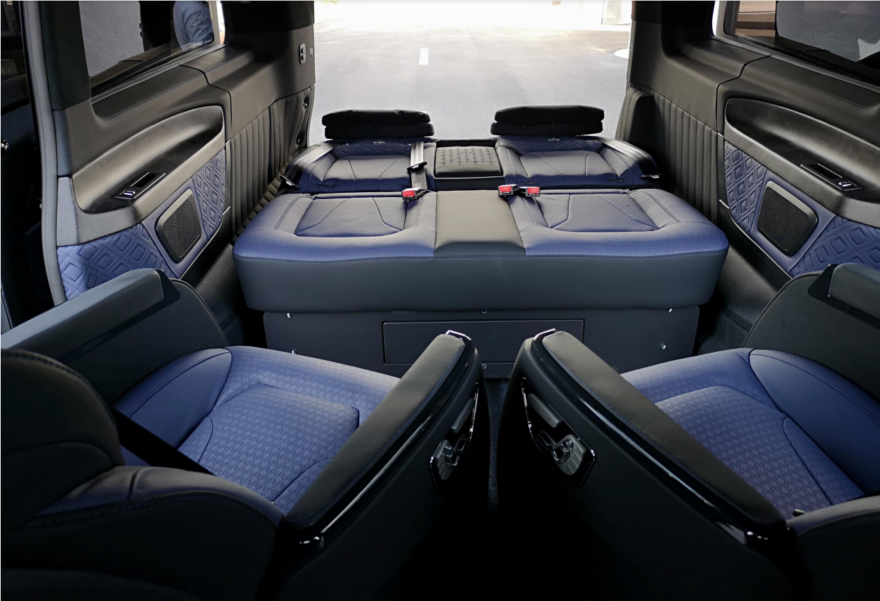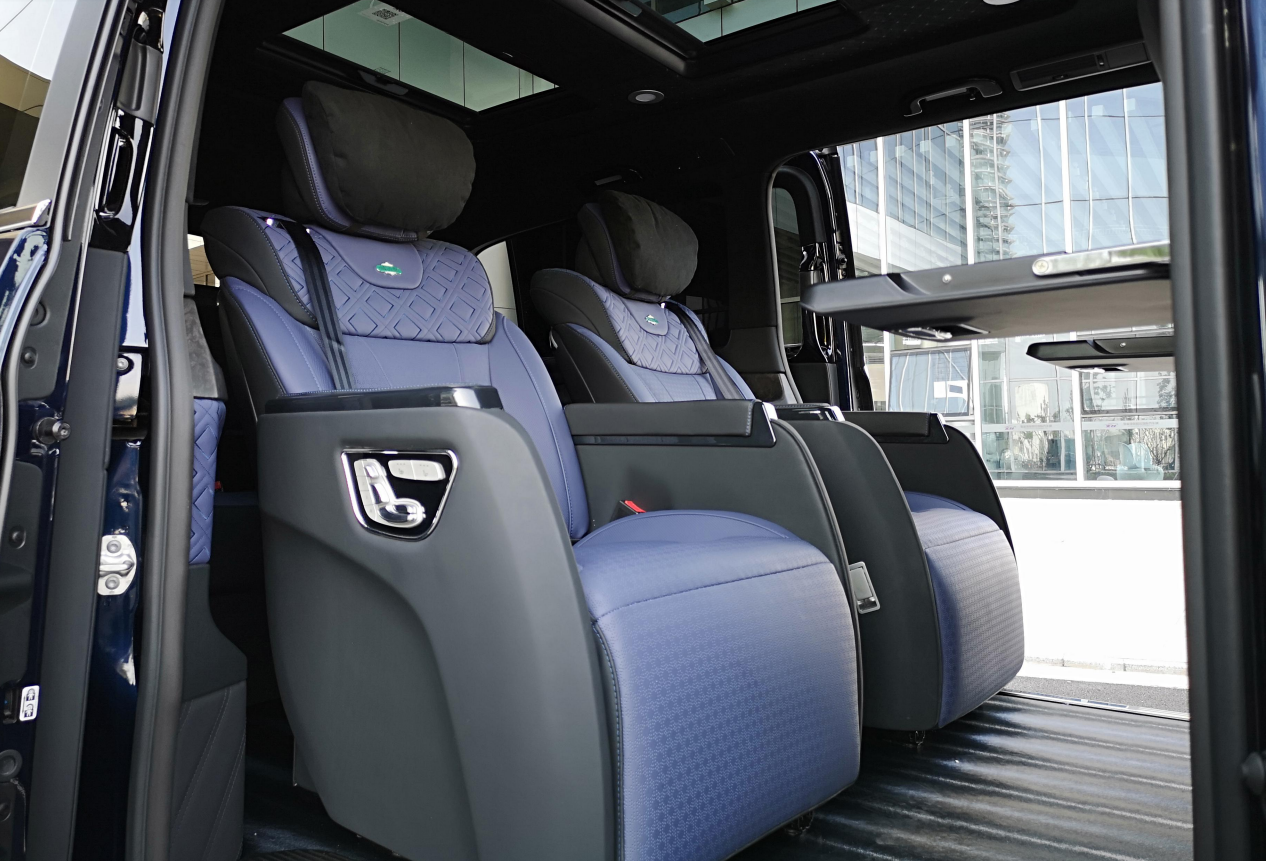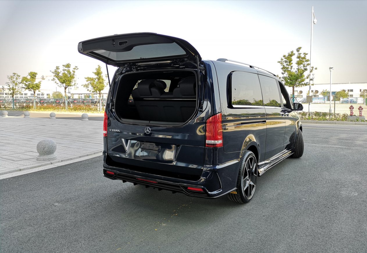 悬架类型:前麦弗逊式/后版拖拽臂式独立悬架 外部配置 豪华镜面奔驰中网标,豪华镀铬行李架,全车尊贵镀铬门外拉手,全车尊贵镀铬迎宾踏板(8件套),后尾门尊贵镀铬装饰件(3件套),后杠尊贵镀铬装饰条,全车尊贵镀铬车窗亮条,全景双独立天窗,车尾双侧电控蝴蝶窗,车体VIP金属标识,双侧电动滑动门带防夹功能 EASY-PACK,电动尾门带防夹保护,20寸日本原装进口WALD毂,独立开启尾门玻璃,日本原装WALD前后空气动力学套件; 内部配置 豪华仪表盘附全彩液晶显示屏,Nappa真皮多功能方向盘,奢华带背靠桌板 HansReinke真皮正副驾驶座椅,豪华中央扶手箱,HansReinke真皮商务航空座椅(座椅前后俯仰,前后电动调节,舒适连体腿拖,加热,通风),奢华HansReinke真皮三人沙发(座椅前后俯仰,前后电动调节,沙发底部储物抽屉),奢华Alcantara翻毛全车车顶,豪华车顶 LED 灯光氛围系统,全车钢琴漆门拉手 3M 地盘厢板隔音,全车豪华雀眼/黑桃/乌木内饰件,豪华环保实木地板/进口木纹地板革/Skia 羚羊纹地板革; 电子配置 ECO发动机启动/停止功能,DYNAMIC SELECT动态操控选择控制器,包括4种驾驶模,电动机械式动力转向,定速巡航控制THERMOTRONIC双区自动恒温空调TEMPMATIC乘客舱自动空调,乘客舱独立控制,电控车辆稳定行驶系统 (ESP® 9i),胎压监测系统,正副驾驶座安全气囊及侧气囊 /全舱侧窗安全气帘,正副驾驶座安全带未系提示,驾驶室管理和数据系统(COMAND),包括8.4英寸高分辨率显示屏,声控系统(LINGUATRONIC),CD 播放器等 库存:2台