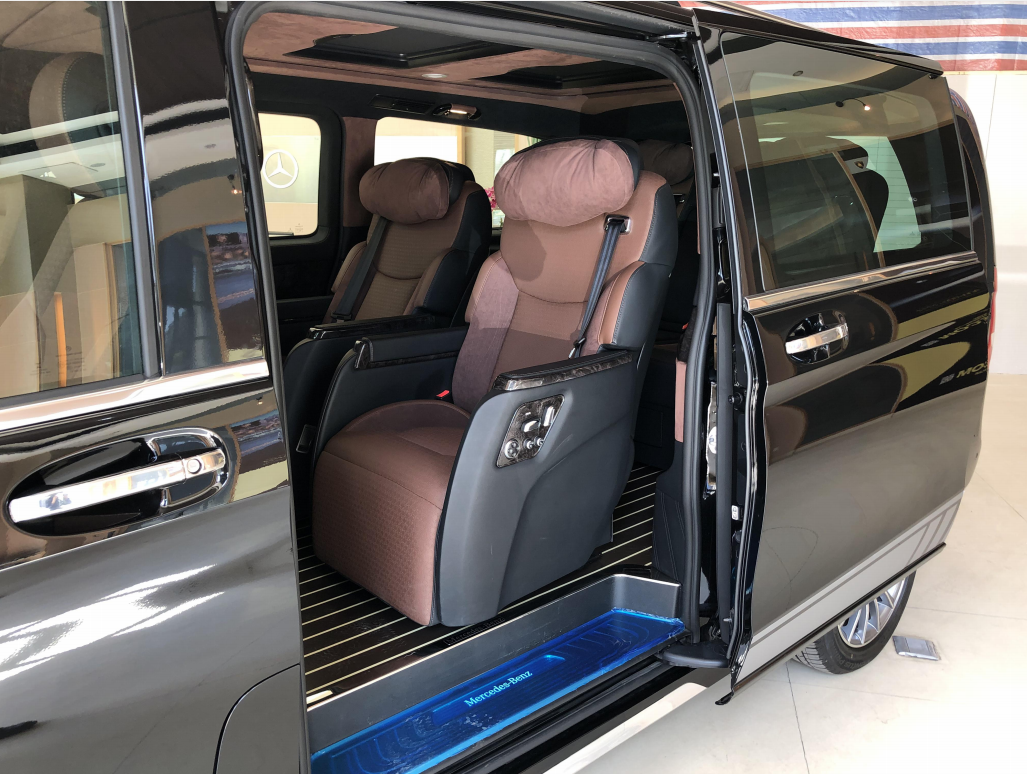 长*宽*高:5370*1928*1920 mm ;油箱容积:70L 驱动方式:前置后驱;燃油标号:95 号 悬架类型: 前麦弗逊式/后版拖拽臂式独立悬架 豪华镜面奔驰中网标;豪华镀铬行李架;全车尊贵镀铬门外拉手;全车尊贵镀铬迎宾踏板(8件套);后尾门尊贵镀铬装饰件(3件套);后杠尊贵镀铬装饰条;全车尊贵镀铬车窗亮条;全景双独立天窗;车尾双侧电控蝴蝶窗;车体VIP金属标识;双侧电动滑动门带防夹功能 EASY-PACK;电动尾门带防夹保护;17寸多幅轮毂;独立开启尾门玻璃;豪华仪表盘附全彩液晶显示屏;Nappa真皮多功能方向盘;奢华带背靠桌板HansReinke,真皮正副驾驶座椅;豪华中央扶手箱;奢华HansReinke真皮商务航空座椅(座椅前后俯仰,前 奢华HansReinke 真皮三人沙发(座椅前后俯后电动调节,舒适连体腿拖,加热,通风) 仰,前后电动调节,沙发底部储物抽屉);奢华Alcantara 翻毛全车车顶,豪华车顶,LED灯光氛围系统;全车钢琴漆门拉手 3M 地盘厢板隔音;全车豪华雀眼/黑桃/乌木内饰件;豪华环保实木地板/进口木纹地板革/Skia 羚羊纹地板革 电子配置 ECO发动机启动/停止功能 DYNAMIC SELECT 动态操控选择控制器,包括4种驾驶模电动机械式动力转向,定速巡航控制THERMOTRONIC,双区自动恒温空调TEMPMATIC,乘客舱自动空调,乘客舱独立控制 电控车辆稳定行驶系统 (ESP® 9i) 胎压监测系统 正副驾驶座安全气囊及侧气囊 /全舱侧窗安全气帘,正副驾驶座预紧式安全带,安全带未系提示; 交通标志辅助系统(TRAFFIC SIGN ASSIST)注意力辅(ATTENTION ASSIST); 预防性安全系统 (PRE-SAFE® ) 侧风稳定控制辅助系统(SIDEWIND ASSIST);驾驶室管理和数据系统(COMAND),包括 8.4 英寸高分辨率显示屏,声控系统(LINGUATRONIC),CD 播放 器等 库存:2台